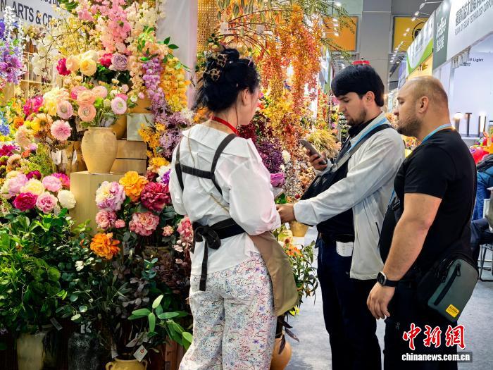 该公司展位负责人罗茂卿说,这款采用手感胶工艺制作的仿真蝴蝶兰,健康环保,手感逼真,受到海外消费者青睐。“连日来,我们已与俄罗斯、匈牙利等国家采购商签下订单。”