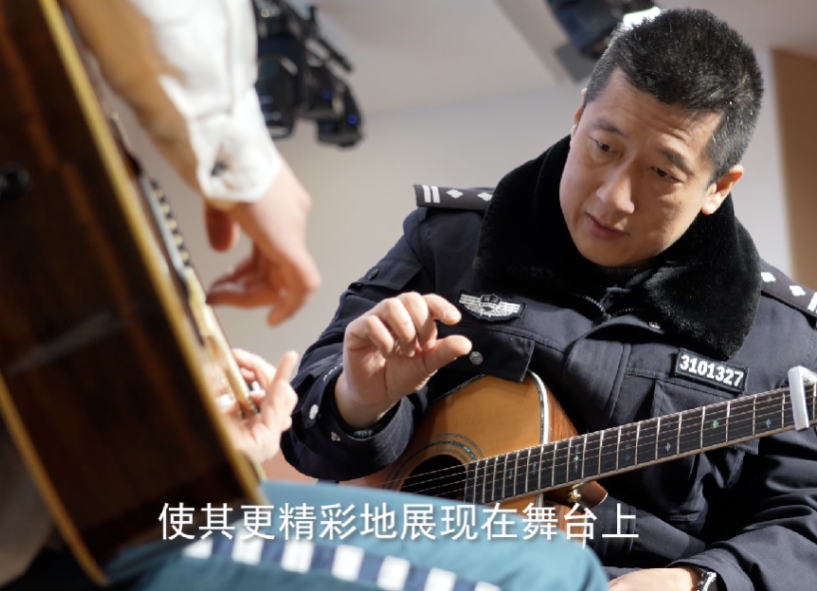 这首新曲中,“时间”的主题是由民警提出的——“去日常改造生活中捕捉时间游走的痕迹,以积极的态度和时间为伴。”服刑人员根据这一理念共同创作了词曲,也在创作中重新审视自己的生活,感受时间的意义。在演出时,艺术团还特意安排了两位“演员”,演出一老一少的服刑人员,将落叶、时钟、人流的自然流动进行变速倒放,以此来呈现歌词内容。