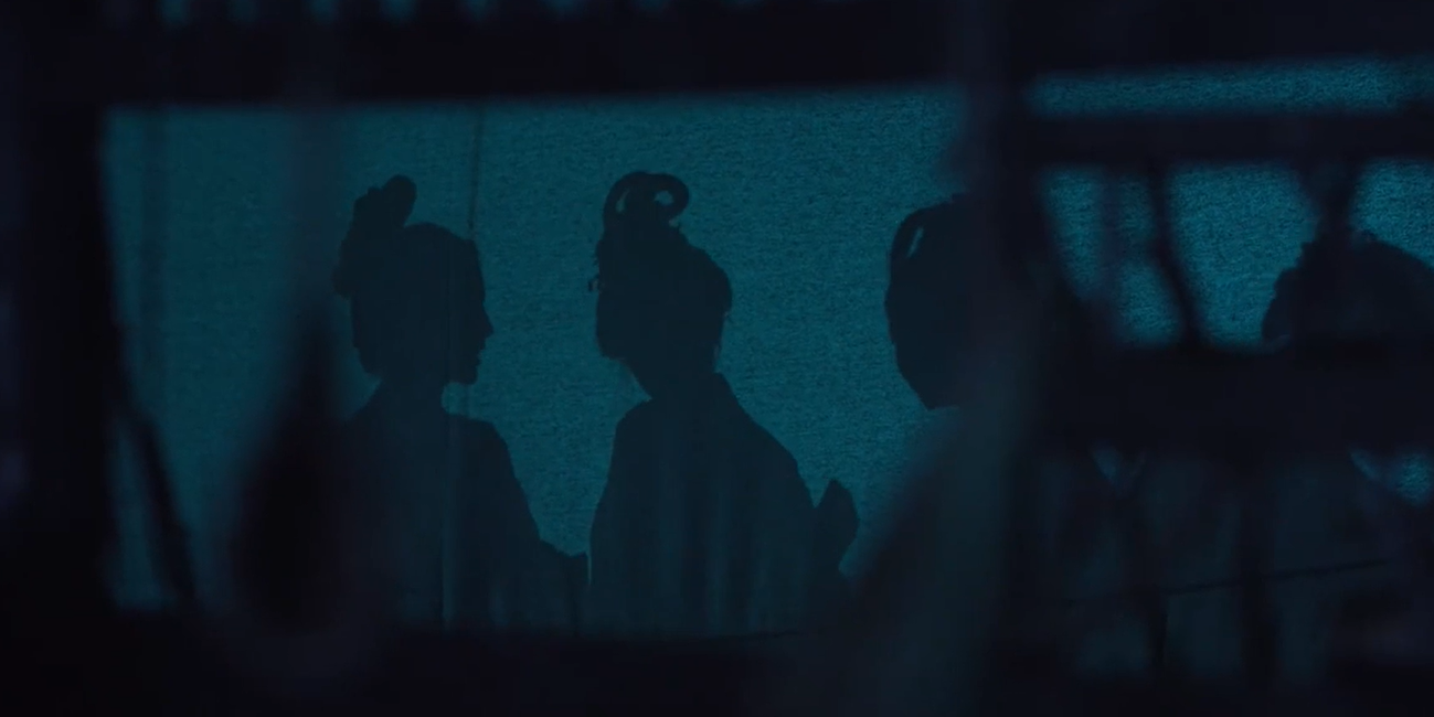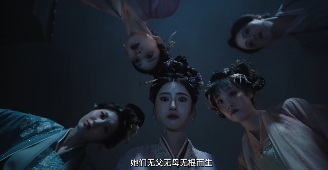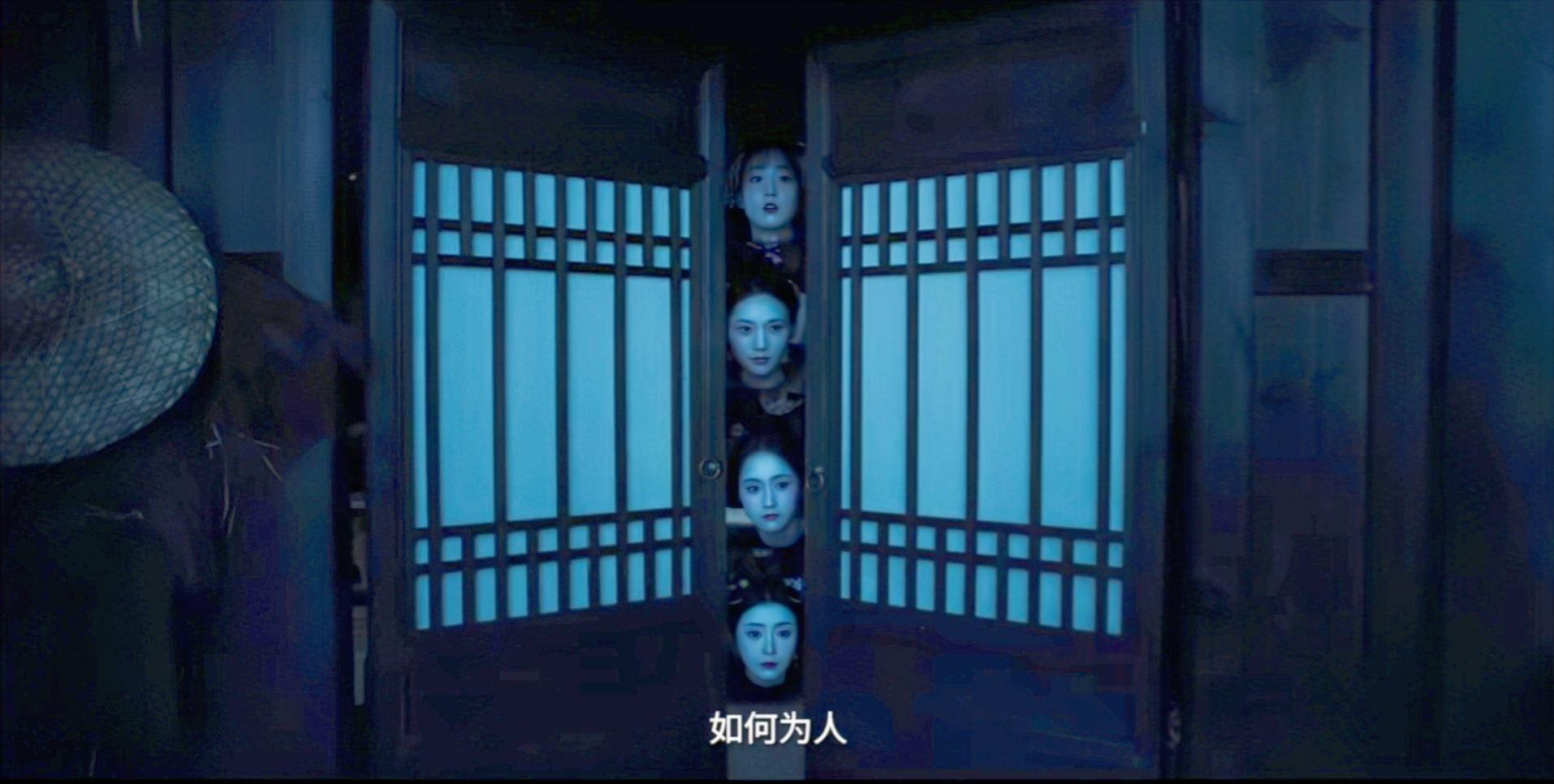 接下来的剧情就跟着这个更夫视角开始延展,看到印在窗布上的5个女人影子,发出诡异的笑声!!!