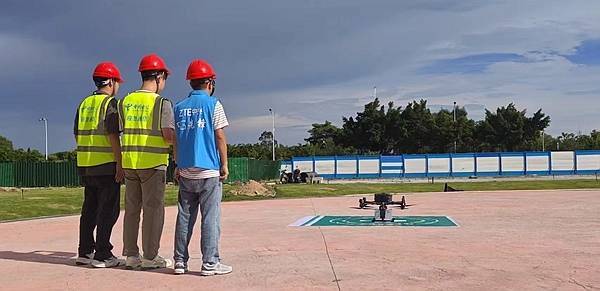 北海电信和中兴公司的技术专家们正在调试无人机,控制无人机安全降落。北海电信供图